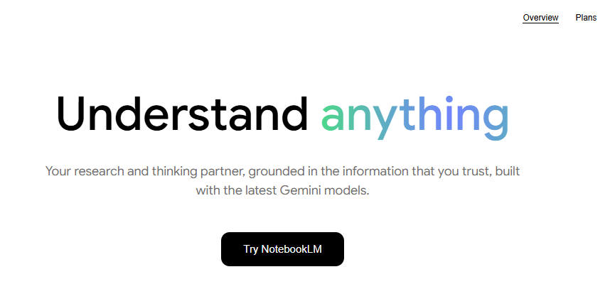 This AI notebook is a comprehensive virtual research assistant powered by Google. The main function of this tool is that it lets you upload documents and uses AI to analyze them. On the basis of its analysis, it can generate summaries, extract important information, answer crucial questions about the topic, and offer all the assistance to help you understand lengthy papers in a much efficient way.